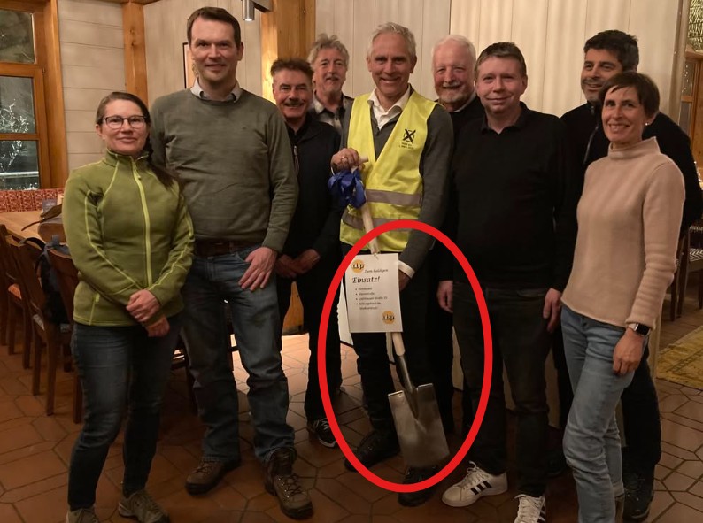 Bürgermeisterkandidat Tobias Lexhaller bekam beim ubp-Treffen in den Bürgerstuben einen Spaten geschenkt. Pack mas!