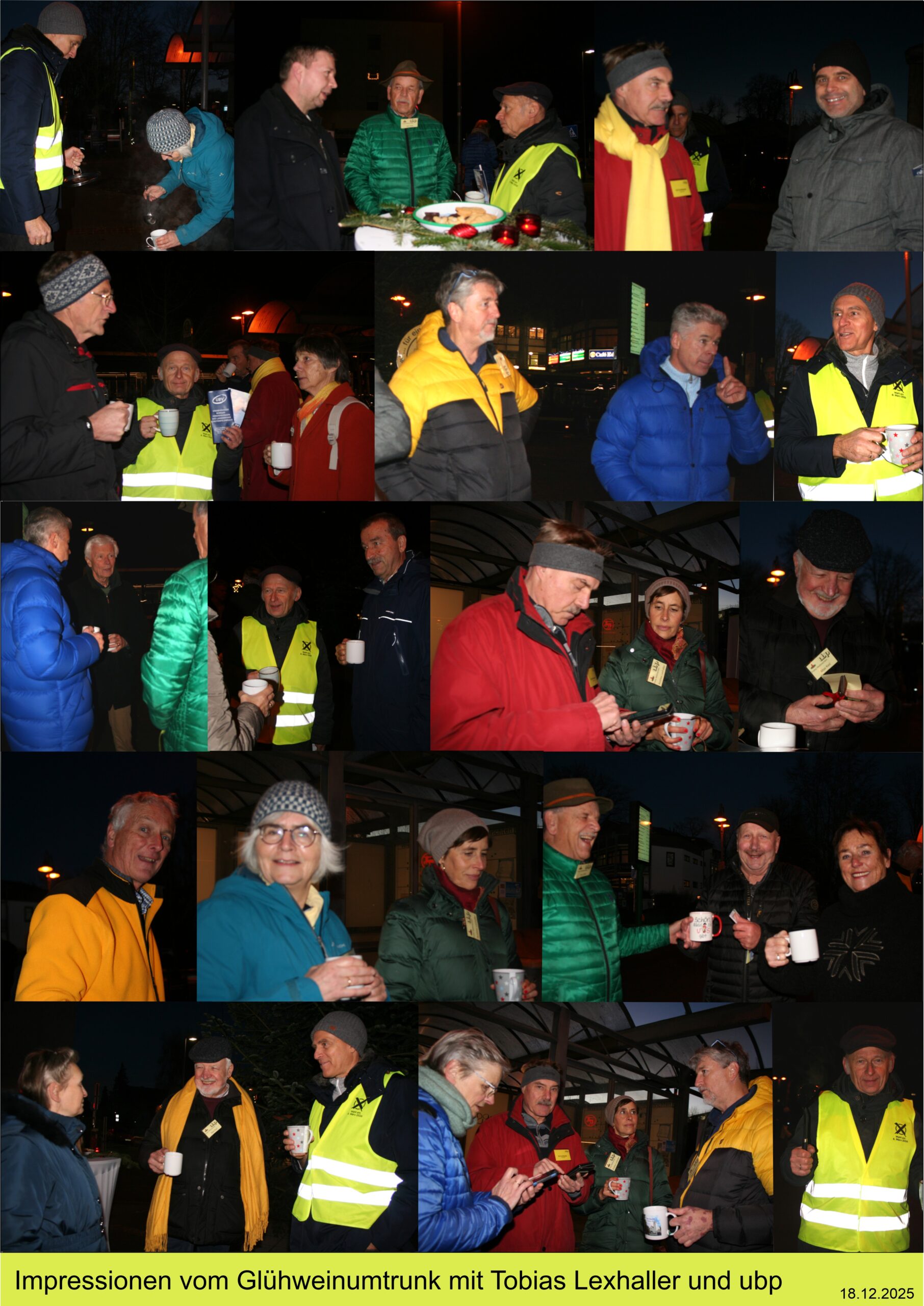 Glühwein am Bahnhof Von wpadmin19. Dezember 202519. Dezember 2025Aktuell Ein eher familiäres Treffen war es, der Adventsumtrunk mit Bürgermeisterkandidat mit Tobias Lexhaller. Fotos: Gela Ruhe