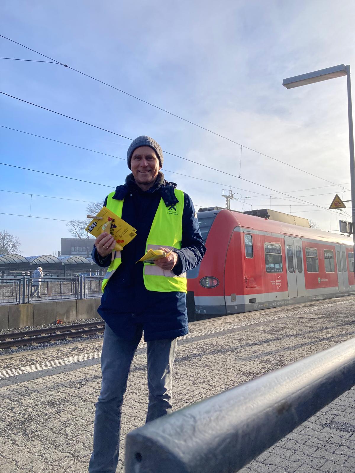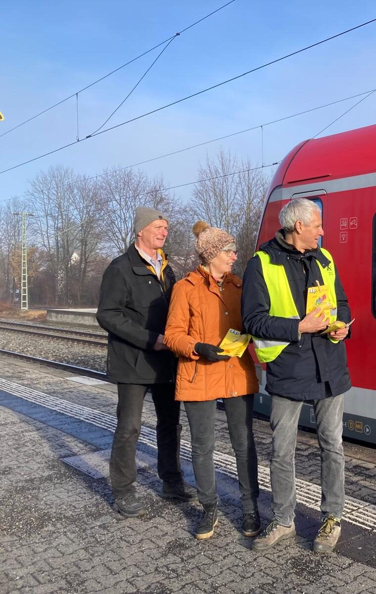 Andere Parteien und Gruppierungen stellen ihren Haustür-Wahlkampf heraus. Die Unabhängigen Bürger Puchheim und der parteifreie Bürgermeisterkandidat Tobias Lexhaller versorgen die Fahrgäste der