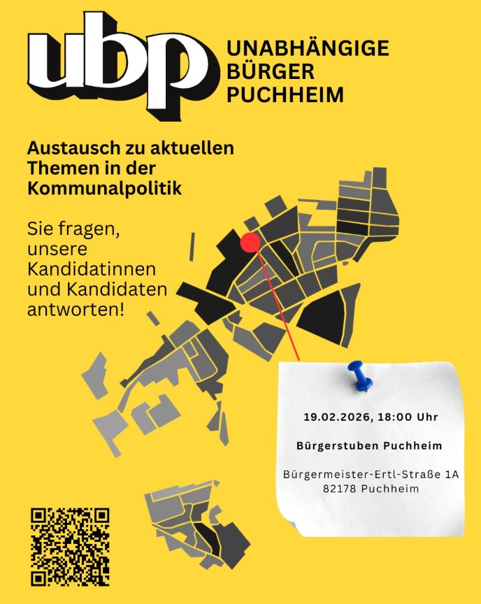 Am Donnerstag, 19.02.2026 um 18 Uhr laden wir Sie herzlich in die @puchheimer_buergerstuben ein. Kommen Sie vorbei, stellen Sie Ihre Fragen und lernen Sie unsere Kandidatinnen und Kandidaten persönlich kennen.