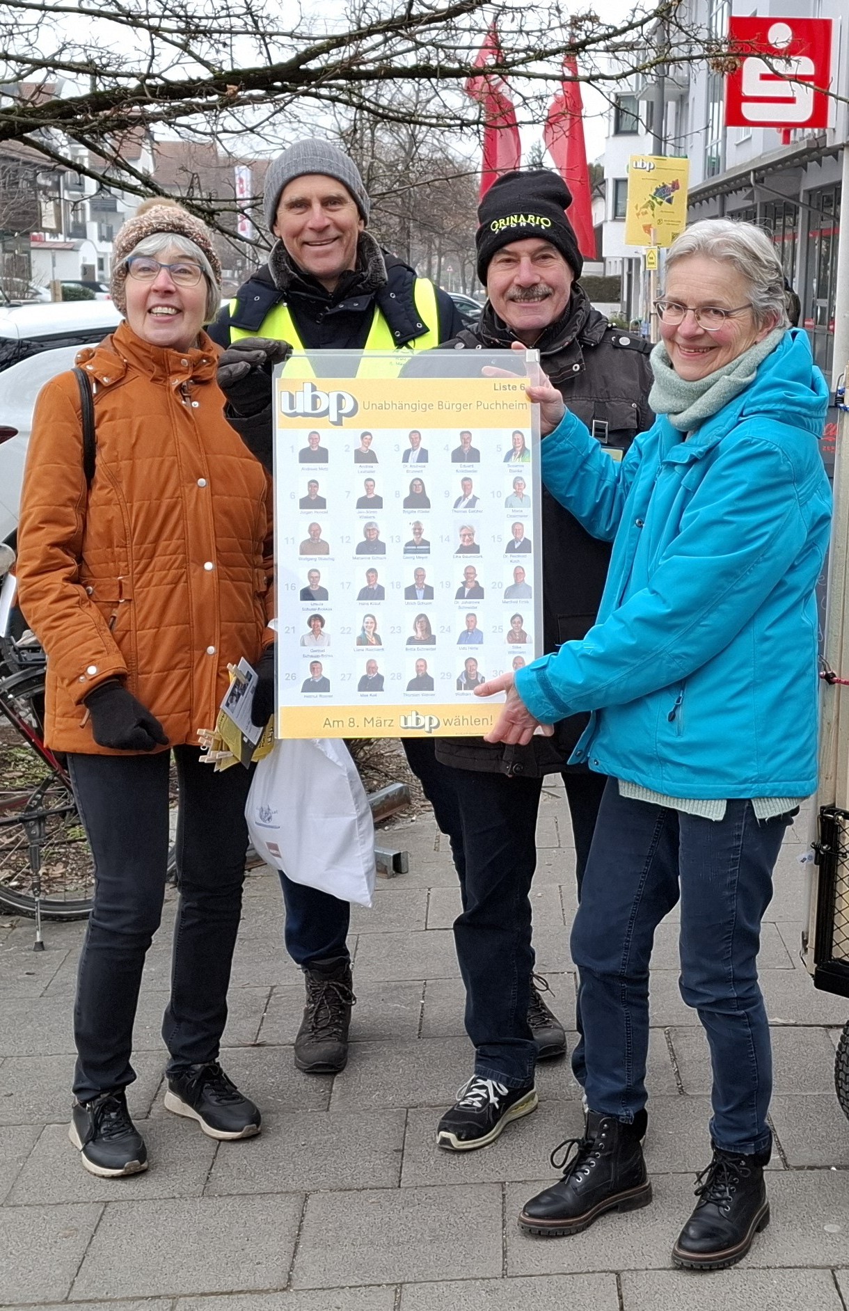 Am Samstag, 24. Januar 2026, kam unser mobiler Wahlkampfstand zu seinem ersten rollenden Einsatz. Dabei kam auch ein Plakat (ein Unikat) mit allen Kandidatinnen und Kandidaten zum Einsatz. Man hörte dann auch gelegentlich Kommentare wie: da kenn ich ja alle, ach so – der und die sind auch dabei … Wichtig ist gelegentlich zu betonen, dass wir keine Partei, sondern eine Wählergemeinschaft sind.