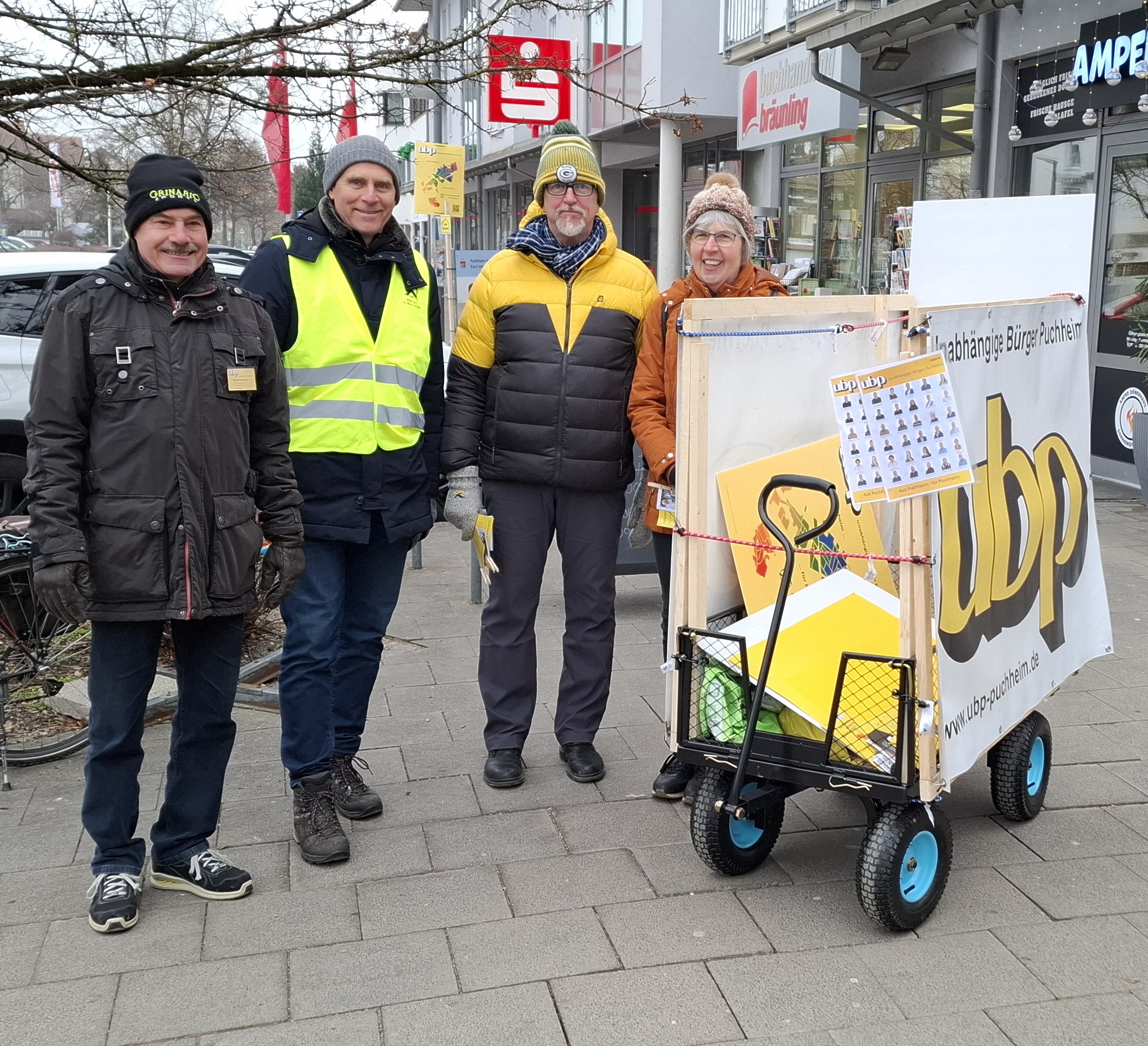 Am Samstag, 24. Januar 2026, kam unser mobiler Wahlkampfstand zu seinem ersten rollenden Einsatz. Dabei kam auch ein Plakat (ein Unikat) mit allen Kandidatinnen und Kandidaten zum Einsatz. Man hörte dann auch gelegentlich Kommentare wie: da kenn ich ja alle, ach so – der und die sind auch dabei … Wichtig ist gelegentlich zu betonen, dass wir keine Partei, sondern eine Wählergemeinschaft sind.