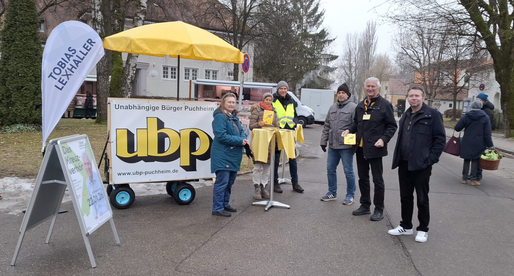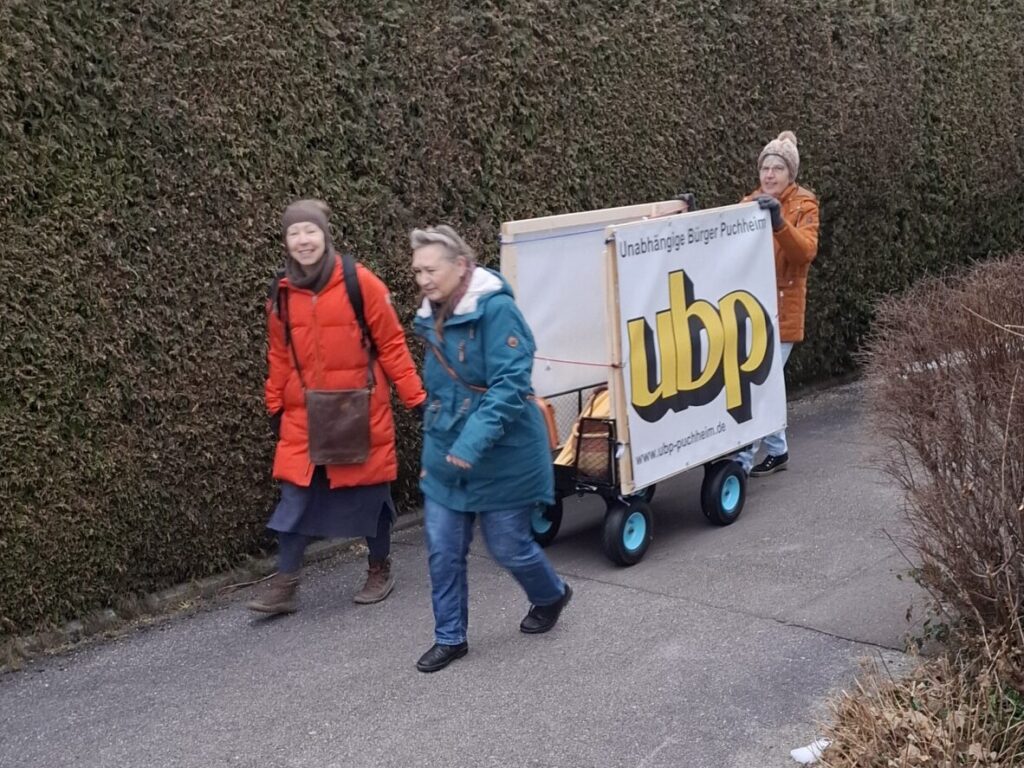 Heute kam der von Max, Andreas und Gerhard organisierte und gestaltete ubp-Bollerwagen zu seinem ersten Einsatz. Los ging es pünktlich um 8:10 Uhr zum grünen Markt mit „Frauenpower“ von Gerti, Maria und Susanne😀. Georg, Andreas M. und weitere Helfer standen dann am Markt bereit. Nach und nach kamen Andrea, Brigitte, Uli, Edi, Jürgen, Hans und Tobias hinzu.